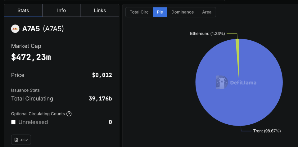 Рублевый стейблкоин A7A5 достиг рыночной капитализации в $473,58 млн и занял первое место среди всех недолларовых стейблкоинов, сообщили аналитики платформы-обозревателя DeFi Llama.